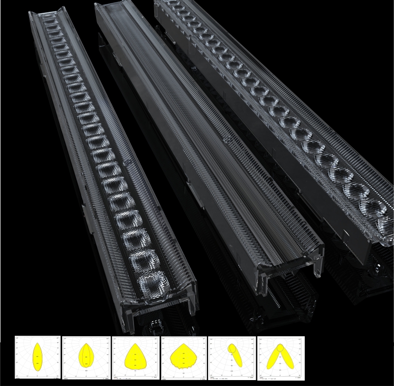 The L60 linear lens family includes the L60-2R and L60-3R families, all of which are compatible with 30302835 5630.5050 LEDs. Optical beam=30 * 90 °, 60 * 90 °, and 90 * 90 °, asymmetric 25 °, symmetric 25 °