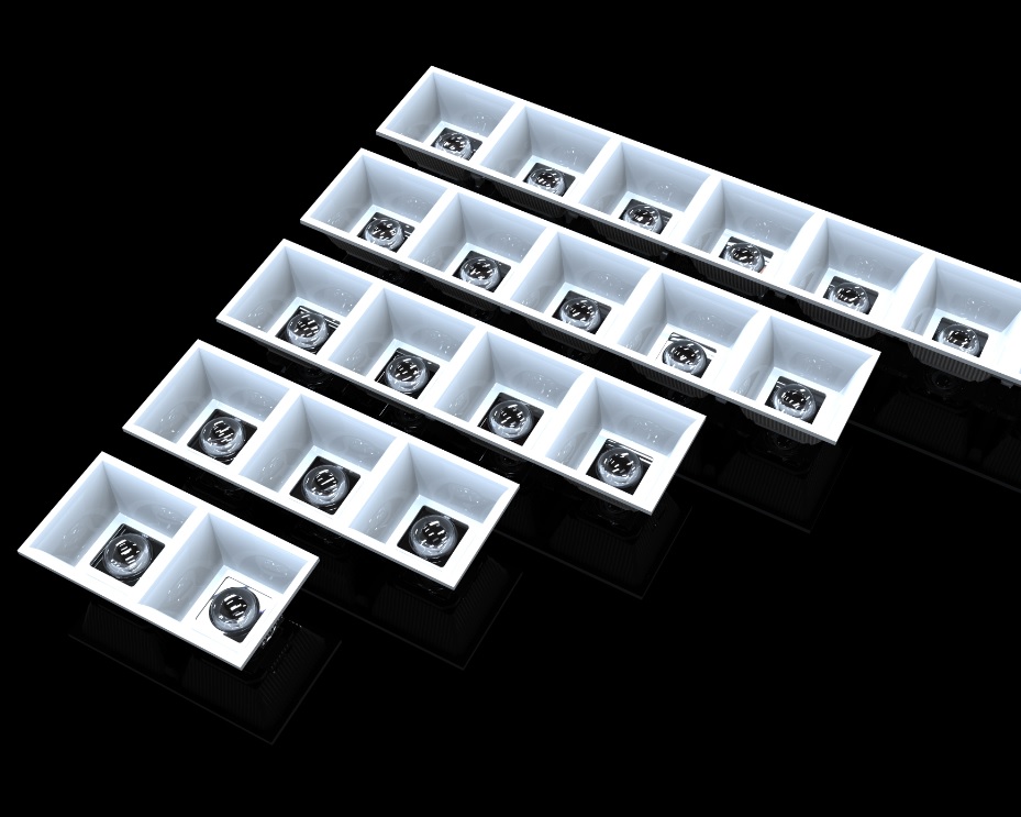 The L40RF family has excellent anti glare capabilities, with UGR<19. The product is available in three standard colors: black, white, and transparent, and can also be customized according to customer needs. Beam angle: 30 °. 30x70 °. 50 °. 80 °